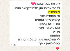 התלמידות שלי מקבלות את כל הידע והניסיון שצברי מהשטח בתהליךך מוקפד ויסודי. עכשיו, כשהכרת אותי קצת יותר, בואי נעשה את הצעד הבא!